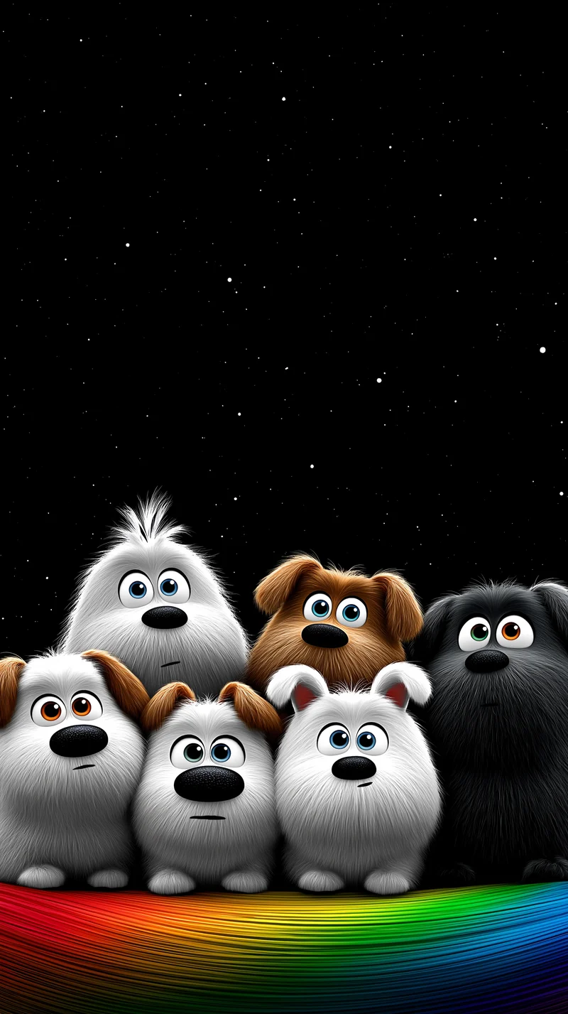 View Fluffy Cartoon Dogs Under Starry Sky Aesthetic Wallpaper mobile WallpaperFluffy Cartoon Dogs Under Starry Sky Aesthetic Wallpaper1284 x 2778
